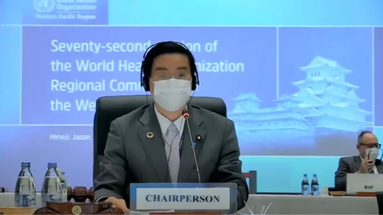 Day 5: Dr Takeshi Kasai, WHO Regional Director for the Western Pacific presenting China as the venue for the next Regional Committee Meeting on 2023, during the 72nd session of the WHO Regional Committee for the Western Pacific.