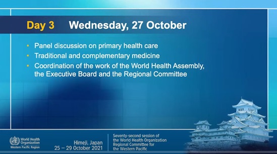 Day 2: Panel discussion during the 72nd session of the WHO Regional Committee for the Western Pacific at Arcrea Himeji Culture and Convention Center, Himeji, Japan, 25-29 October 2021.